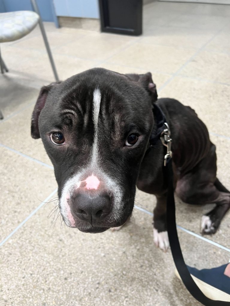 Panda was brought to the NYC shelter after suffering from diarrhea and vomiting for one month. His illness caused extreme emaciation and malnutrition. Based on his symptoms, the shelter assumed he had an obstruction. The shelter does not have the resources to perform diagnostics to confirm the suspected diagnosis, let alone a complex surgery.